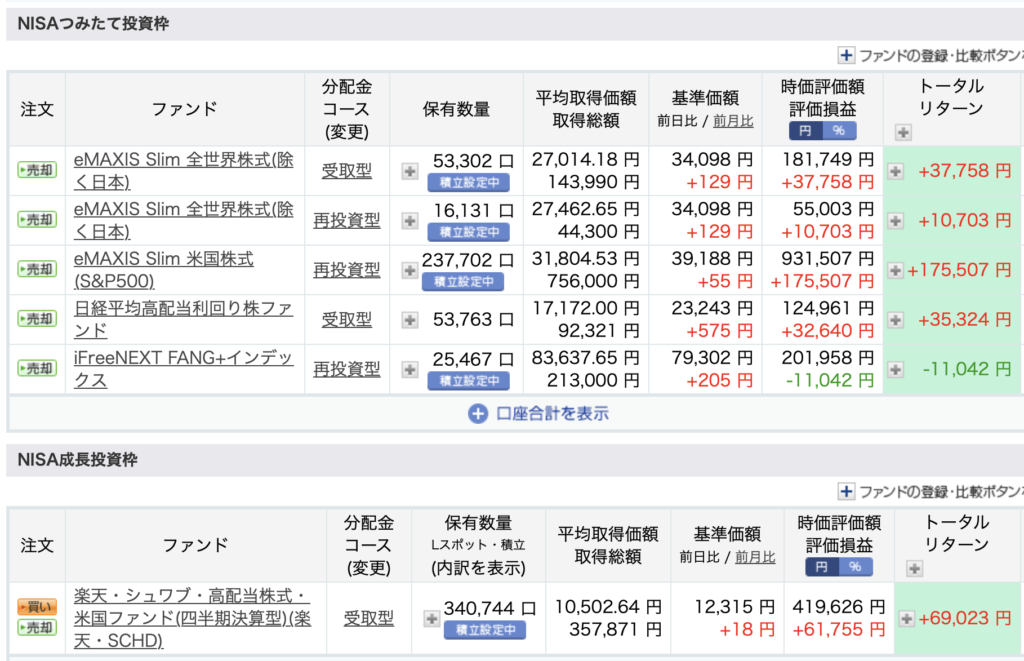 というかなぜか2週間前の投稿より楽天証券口座の残高が増えています。